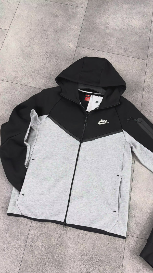 Nike Tech Fleece мъжки спортен екип, черен - класическо сив. Модел 2024. Premium качество